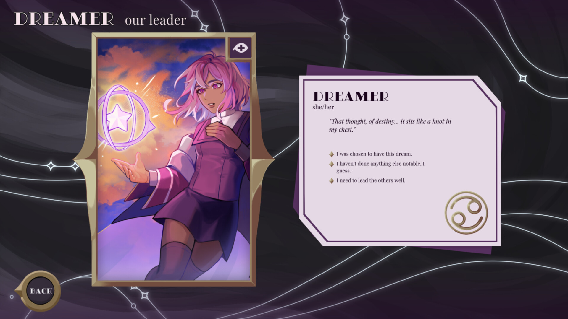 ✦ Refusal Mechanic: Refuse to be bound by destiny. Characters may resist their prescribed roles, altering the course of what they've been told to do. It's up to you to come to grips with your errant actions.