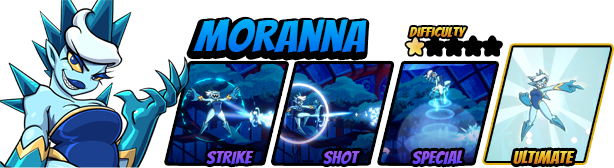 Daughter of the evil queen of frost, Moranna dreams of world domination, and might just have the power to succeed! Her Ice magic lets her freeze bullets and even other duelists, and unlike the rest of the cast, she flies freely across the arena without the need of a jump!