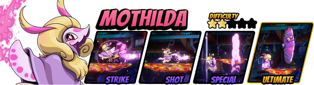 A Hyperactive and fun-loving giant sentient moth that is obsessed with anything shiny. Mothilda uses her magic to summon special (and very shiny) glitter dust clouds she uses as shields.