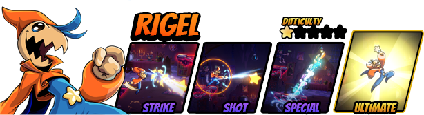 A confident, reckless, but still friendly wizard-in-training that calls upon the power of the stars with the sheer force of his will! Rigel is an easy-to-learn, hard-to-master character that excels at speed.