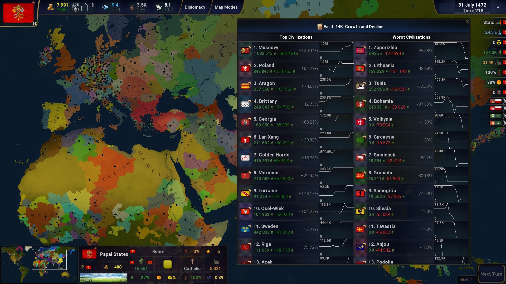 The Definitive Edition of a grand strategy classic, now featuring improved gameplay, a new map with 13,892 provinces, expanded diplomacy, wartime capitulation, faster army recruitment and movement, 32 new religions, new civilizations, new scenarios, atomic weapons, additional government types, new wonders, enhanced graphics, numerous quality-of-life improvements, improved AI behavior, new notifications, improved province border visuals, province names displayed directly on the map, modernized menus, a simplified and responsive UI for better usability, engine updates, performance improvements, and much more.