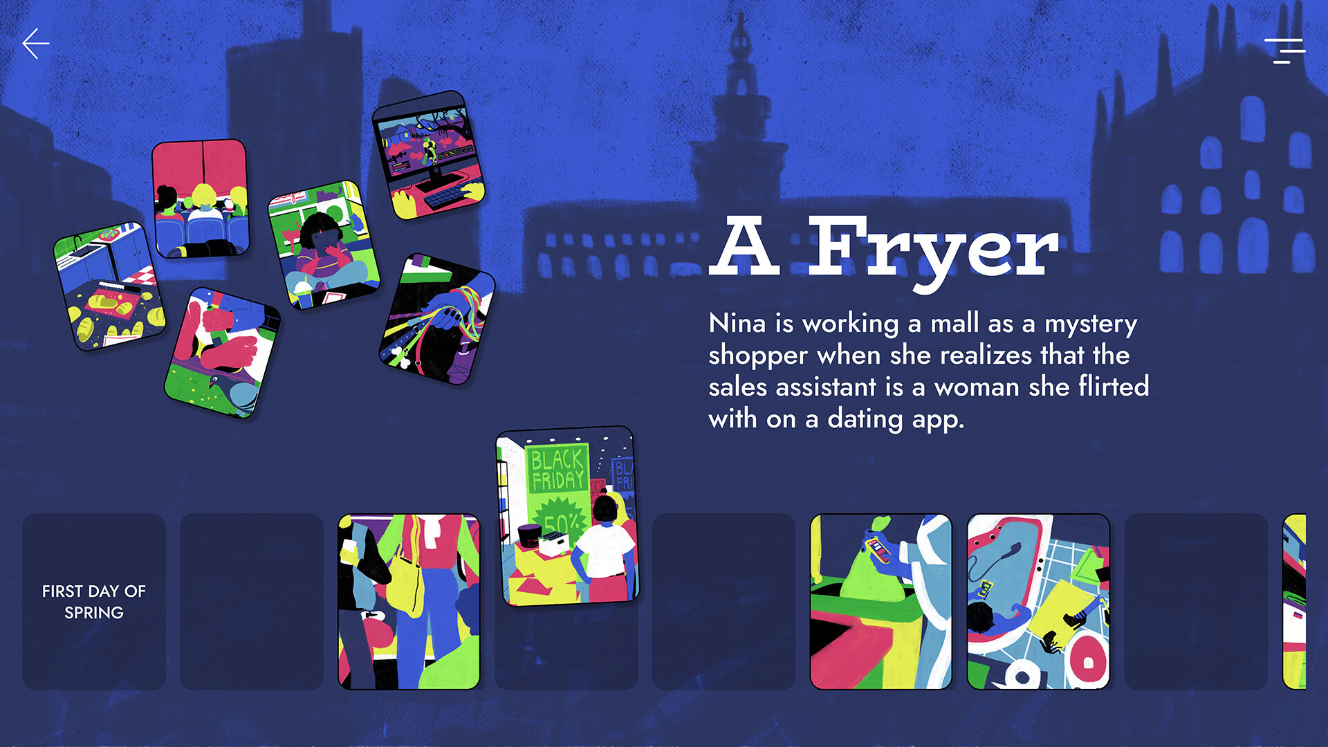 While viewing an apartment, talking on the phone with your partner, standing at a bar counter, chatting with a former best friend, or participating in a street protest, In Their Shoes invites you to navigate subtle yet meaningful choices amid everyday doubts, joys, or tensions. It also reimagines classic visual novel mechanics by allowing you to enter into the tangled and intricate thoughts of each protagonist.