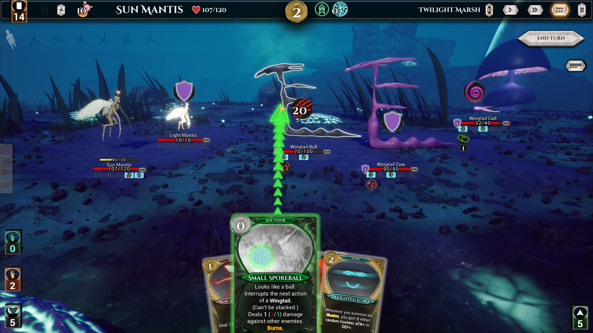 As a Sun Mantis, you conjure illusions of yourself and sacrifice a large portion of your cards for powerful effects. But the wisest Sun Mantis raises what is lost from the ashes and even strengthen it, thus forming an endless cycle of burning and rebirth. Enlighten yourself to unlock the powers of the suns and the true nature of your abilities. Master all techniques, and your enemies will go up in flames.