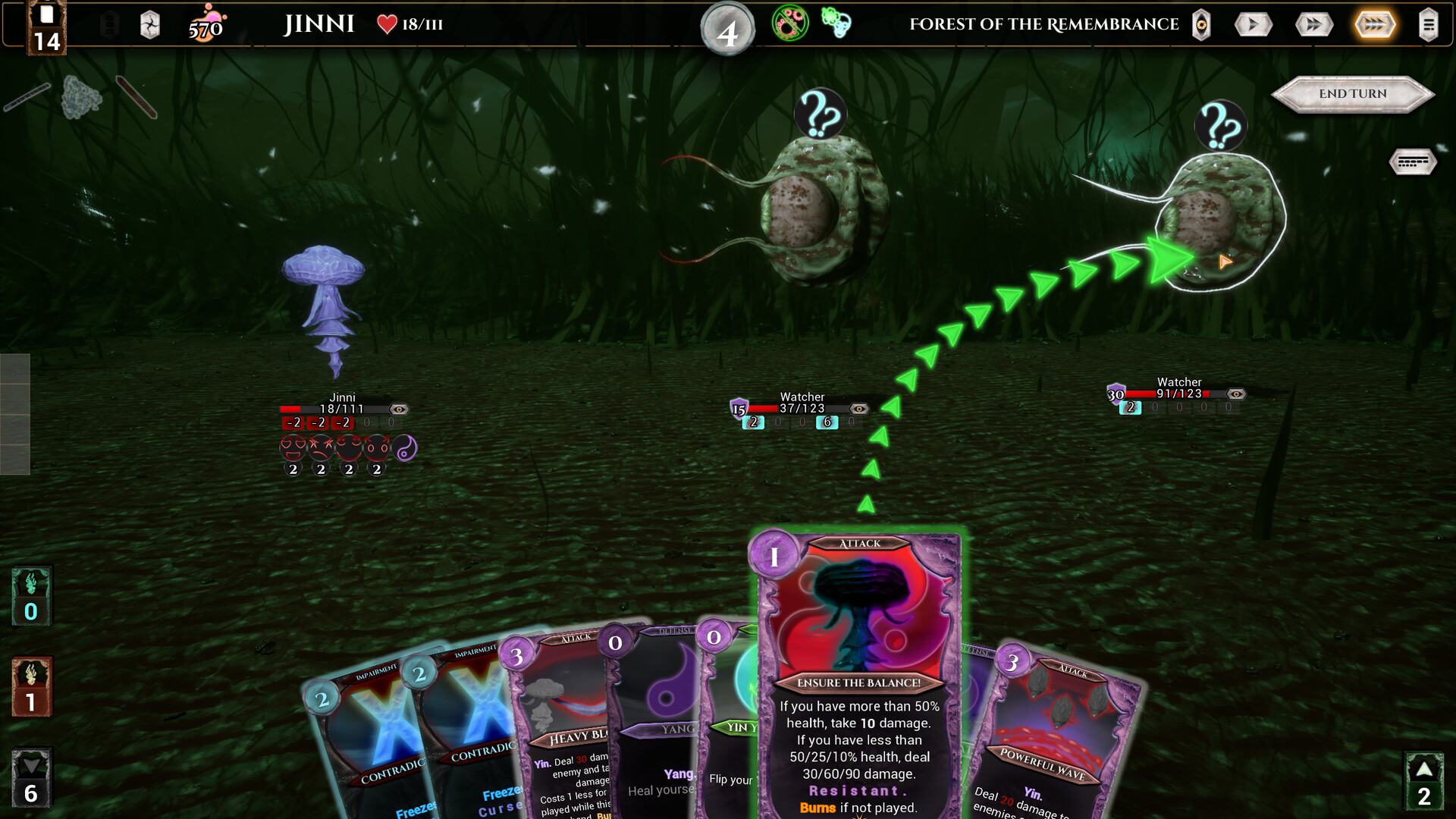 As a Jinni, ensure balance on the battlefield as well as in your deck. Balance self-destructive attacks and healing. Or dare to activate overpowering reserve abilities with minimal life points. But every balance thrives on its circulation. Draw card after card to always find the answer to the most dangerous situations. Master your inner self, and even the gods will learn to respect you.