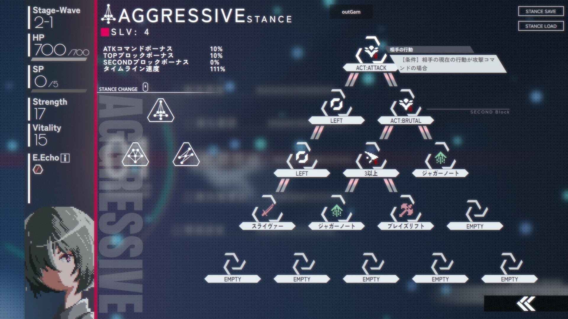 戦闘で得た経験値を各スタンスに振り分け強化します。