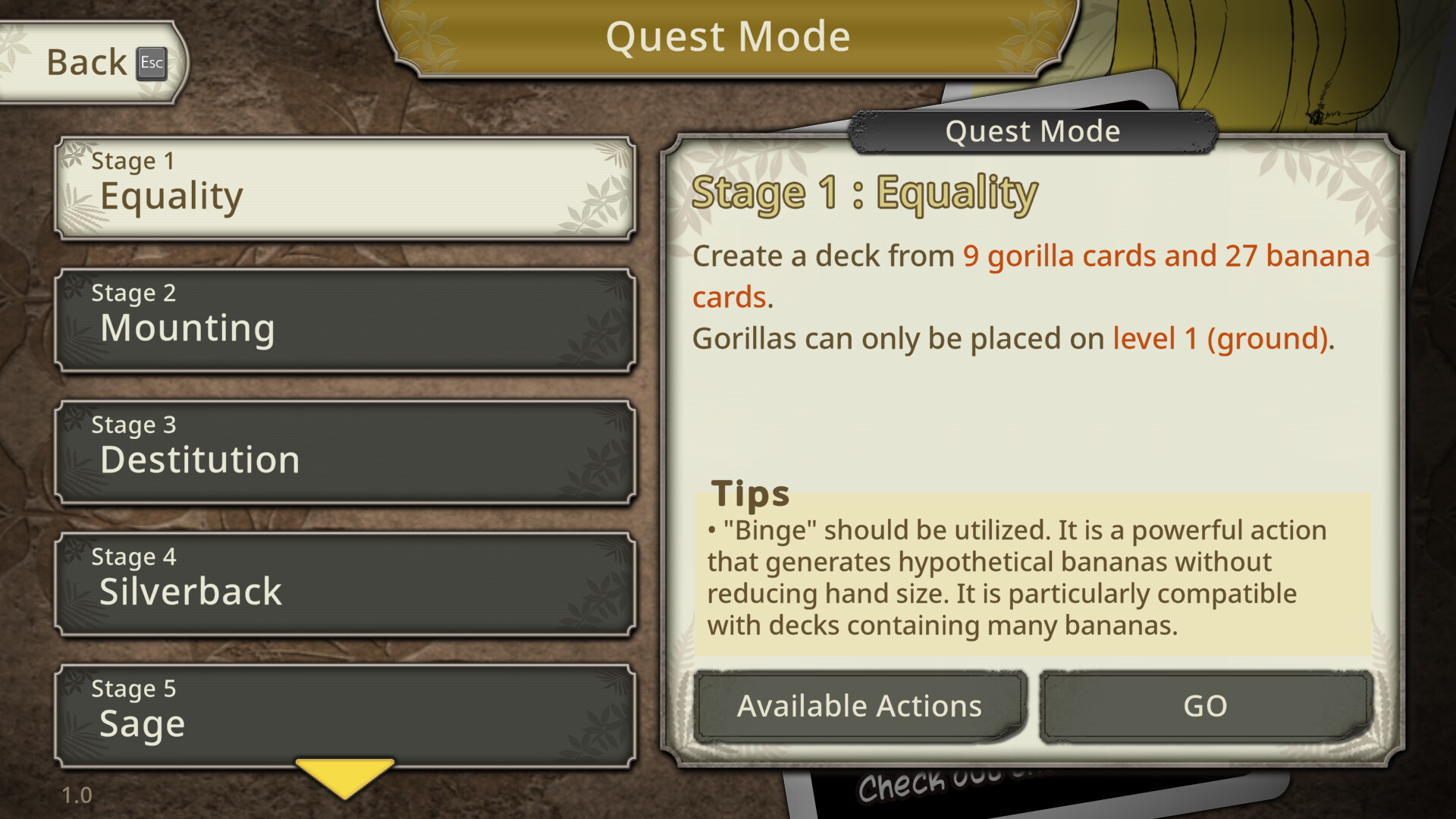 "Goritaire" is a solo card-based survival game centered on building a troop of seven or more gorillas. The deck consists only of Gorillas and Bananas, demanding strategic balance.