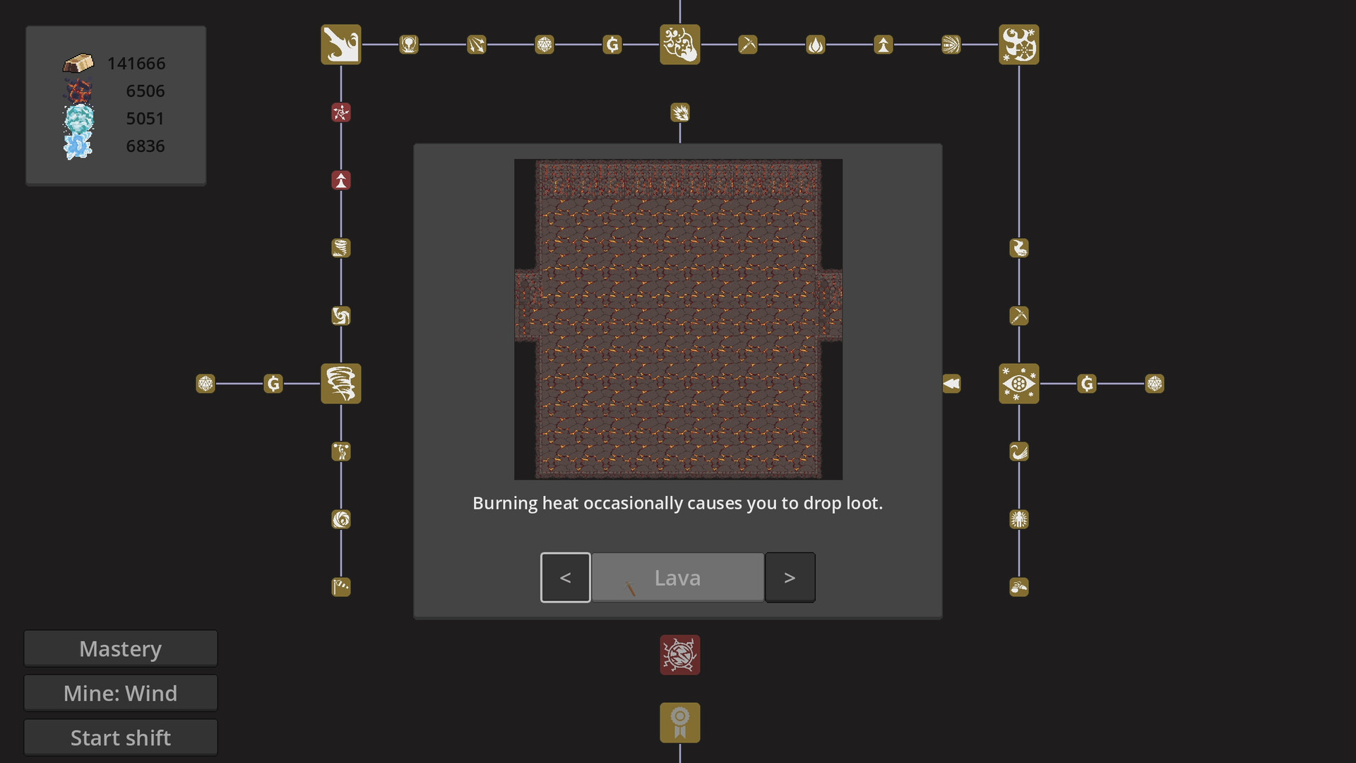 Now you’re digging through stone, lava, ice, and wind-shaped caverns — each mine introducing new mechanics, hazards, and rewards.