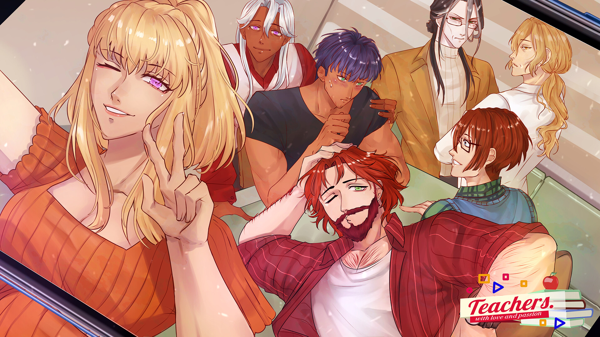 Teachers with Love and Passion is a romantic Otome visual novel set in a private academy where professional and personal boundaries are constantly tested. You step into the role of a new teacher trying to advance your career and deal with unexpected relationships. Who could imagine that such a normal job would drop you in a den full of hot single teachers ready to fall in love with you?