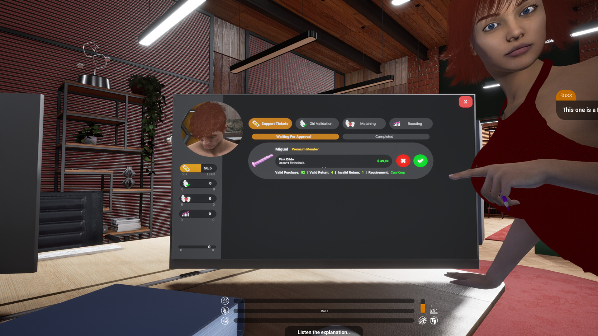 - While having sex, the boss has a progression that get her alerted (alert mean she is coming your way and you need to not get caught!