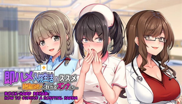 Rock-Hard Rehab: How to Survive a Hospital Harem is a fully illustrated, fully voiced adult visual novel featuring uncensored erotic voice acting (no censor beeps) and mosaic-censored CG artwork compliant with platform standards.