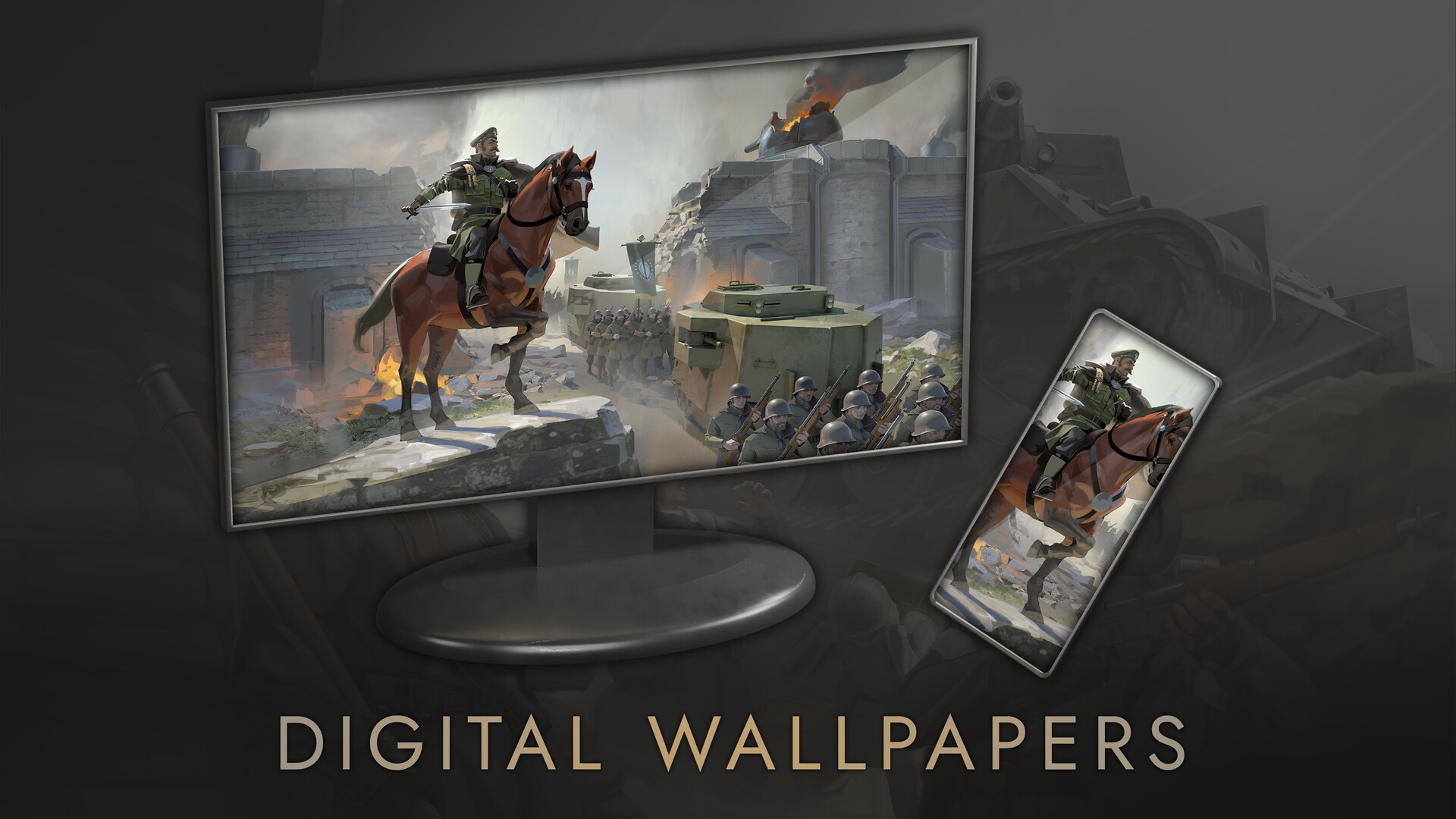 Desktop and mobile wallpaper featuring all new exclusive illustrations from the art team
