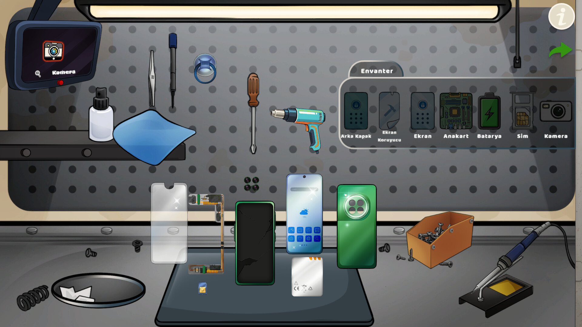Unlockable Repair Mechanics: Step-by-step progression to unlock Battery, Screen Protector, Back Cover, Camera, and Screen repairs.
