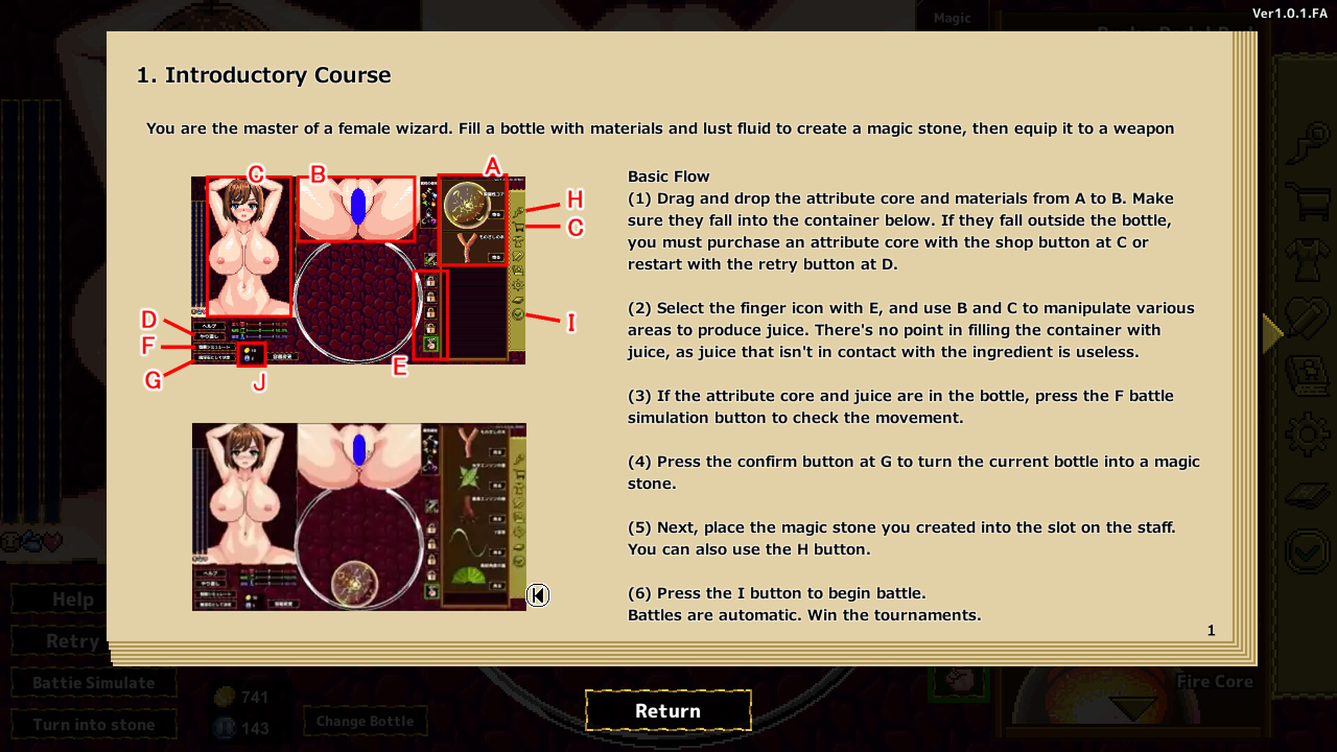 This is a simulation game about training a female mage. You create magic with her juices and aim to win the magic battle tournament.