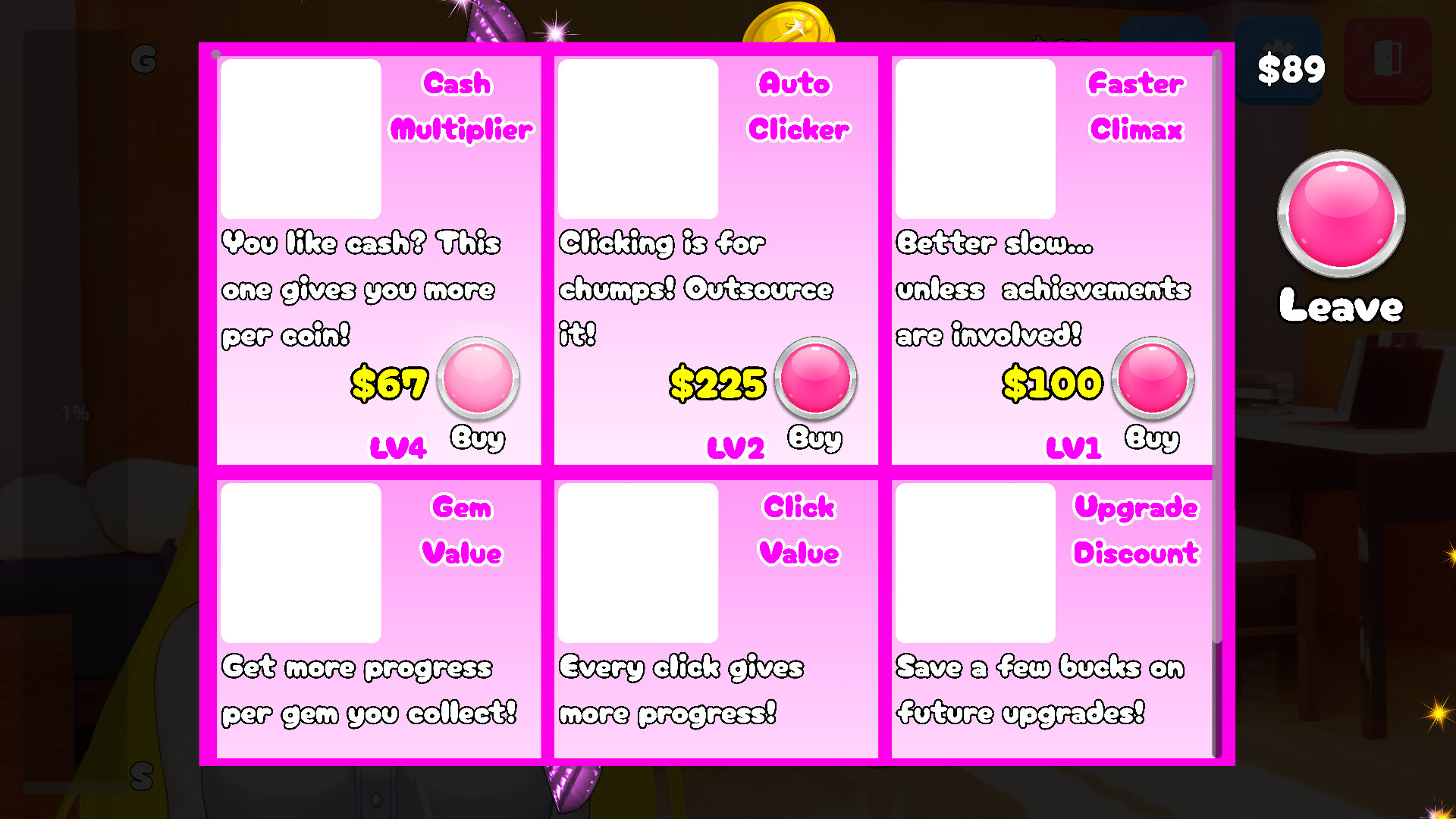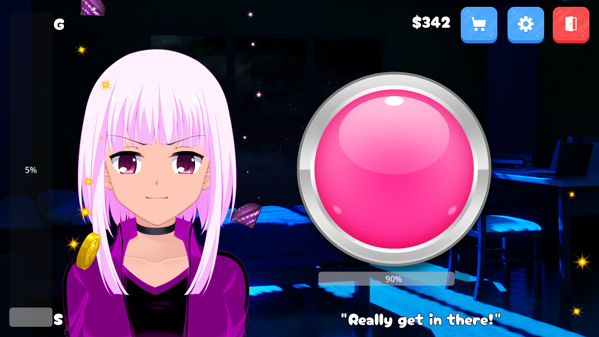 On your quest to 100% all sorts of cheap games on steam, you have been challenged by 8 anime-style waifus! You don't HAVE to beat them, but you MUST begin to get your achievements, so have at them and show them a good time!