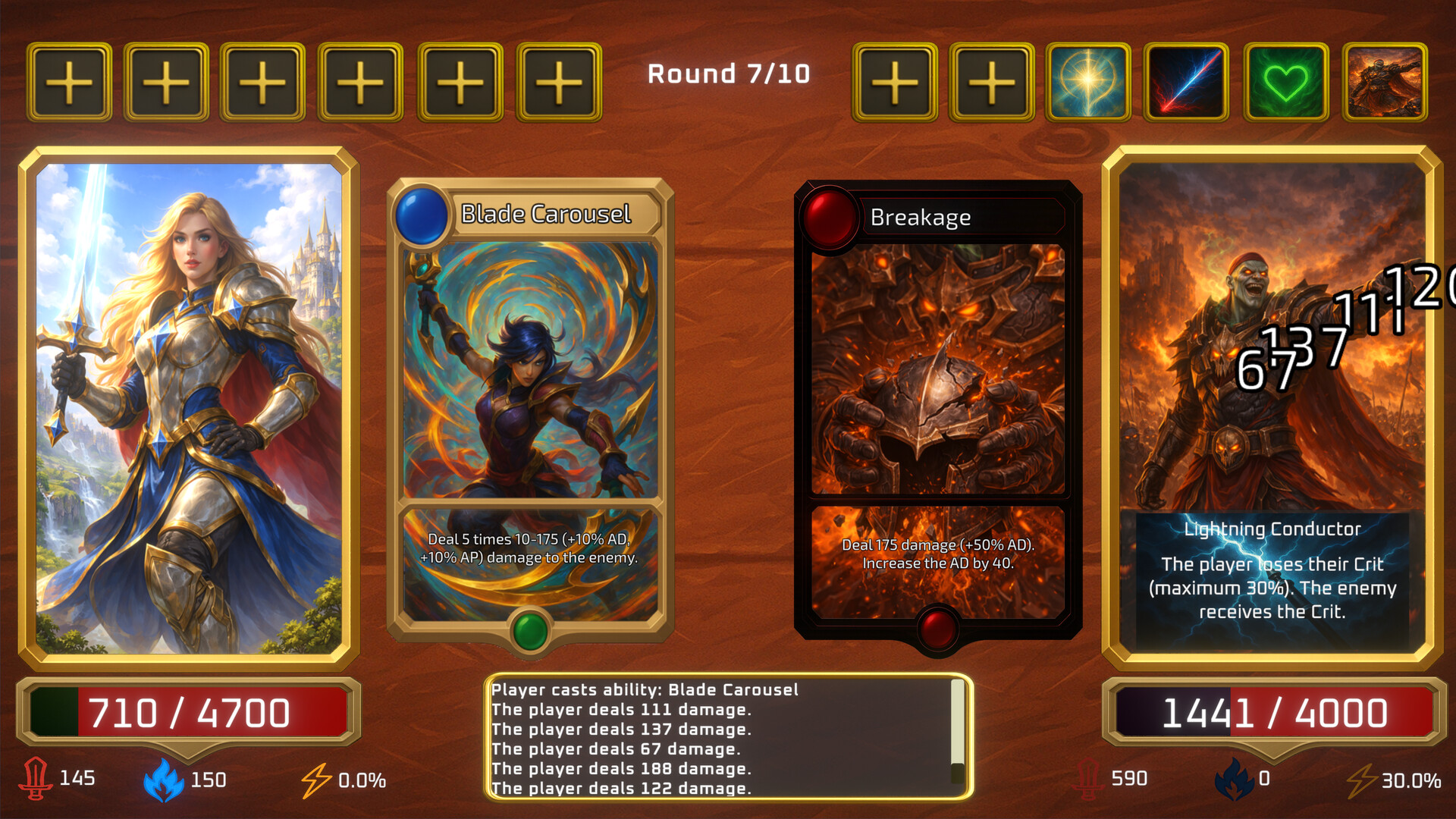 In this turn-based card game, you can expect short, tactical runs with high replayability. At the beginning, you choose one of several heroes, each with their own stats and a unique passive ability that significantly influences your playing style.
