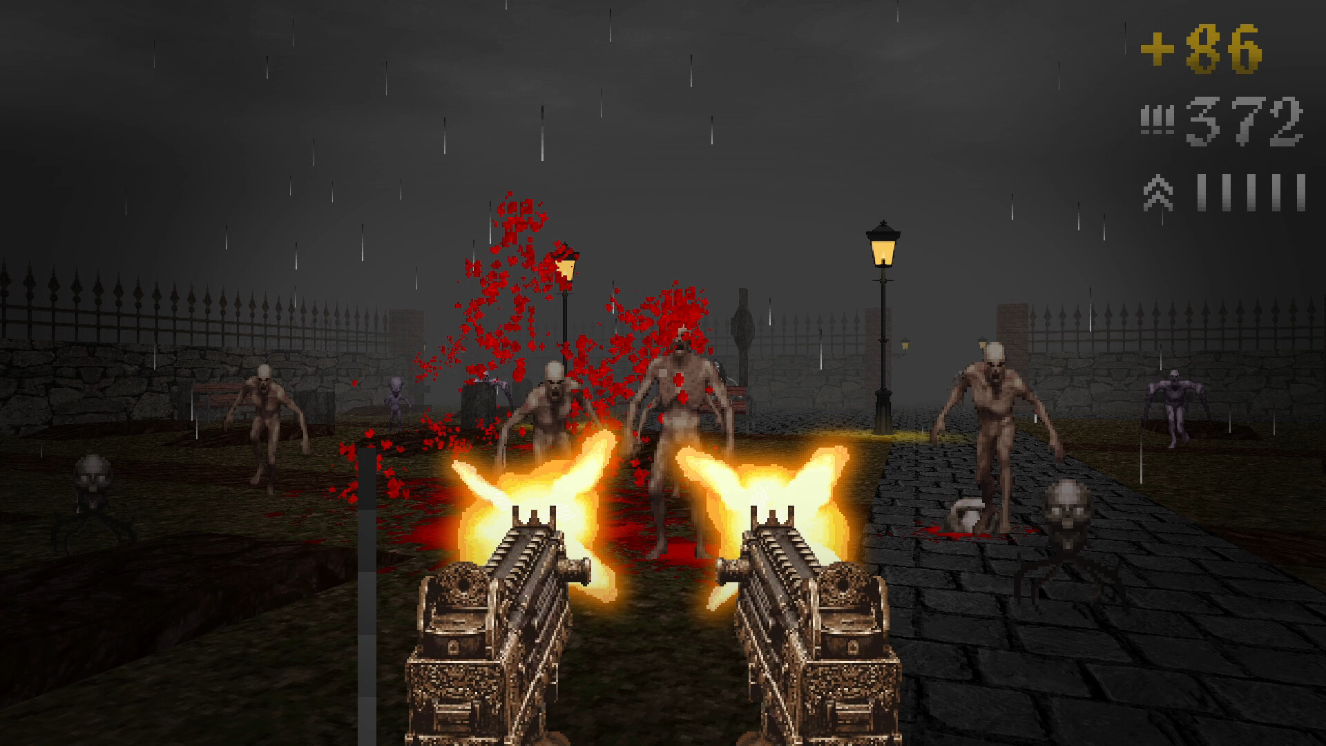 Wield 7 high-powered guns; Pistol, Rifle, Shotgun, Uzis, Grenade Launcher, Flamethrower and the Lightning Hammer. Mow down 16 different types of the undead and 4 bosses. Purge Her Majesty's London… or become part of its decay.