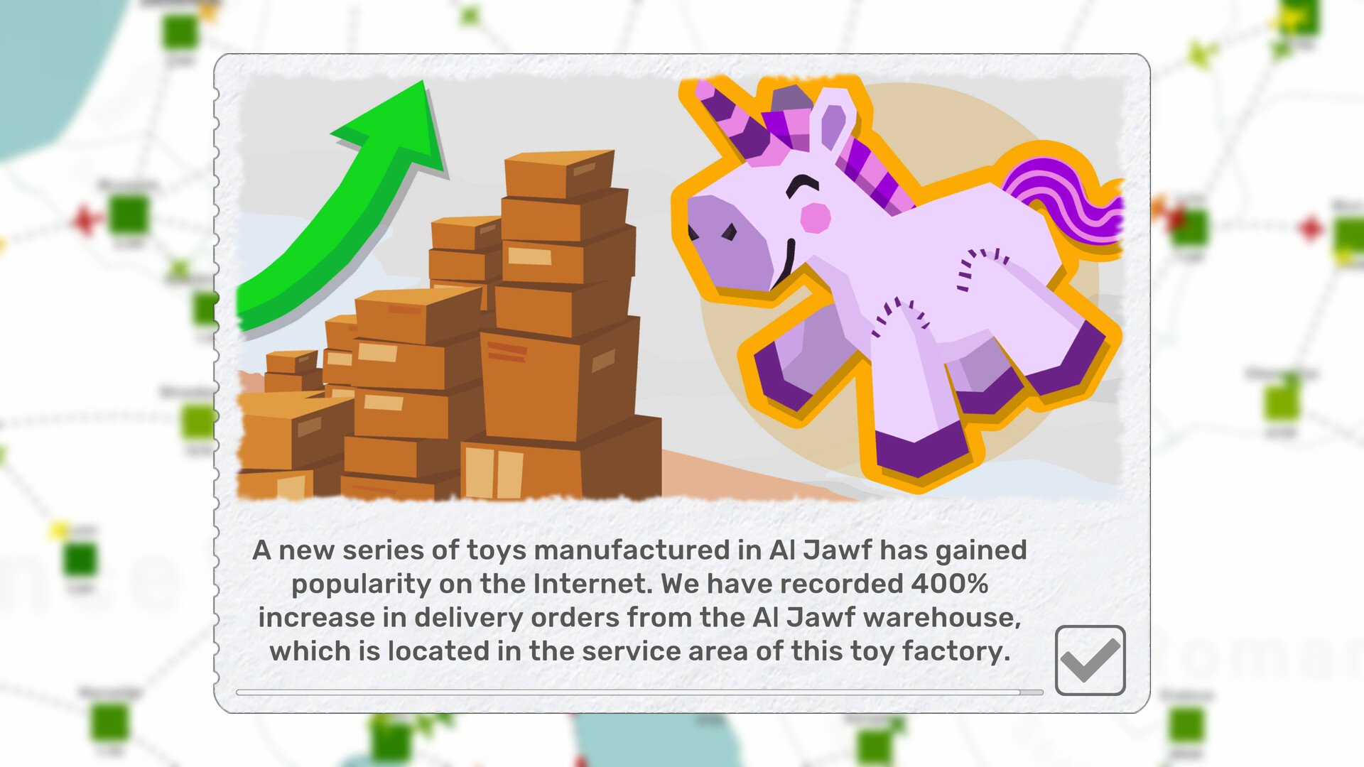The larger the population of all cities near the built warehouse, the more parcels will appear for delivery. You can also build intermediate warehouses away from cities where no new orders will appear. Then such a warehouse can be used as a transport hub.