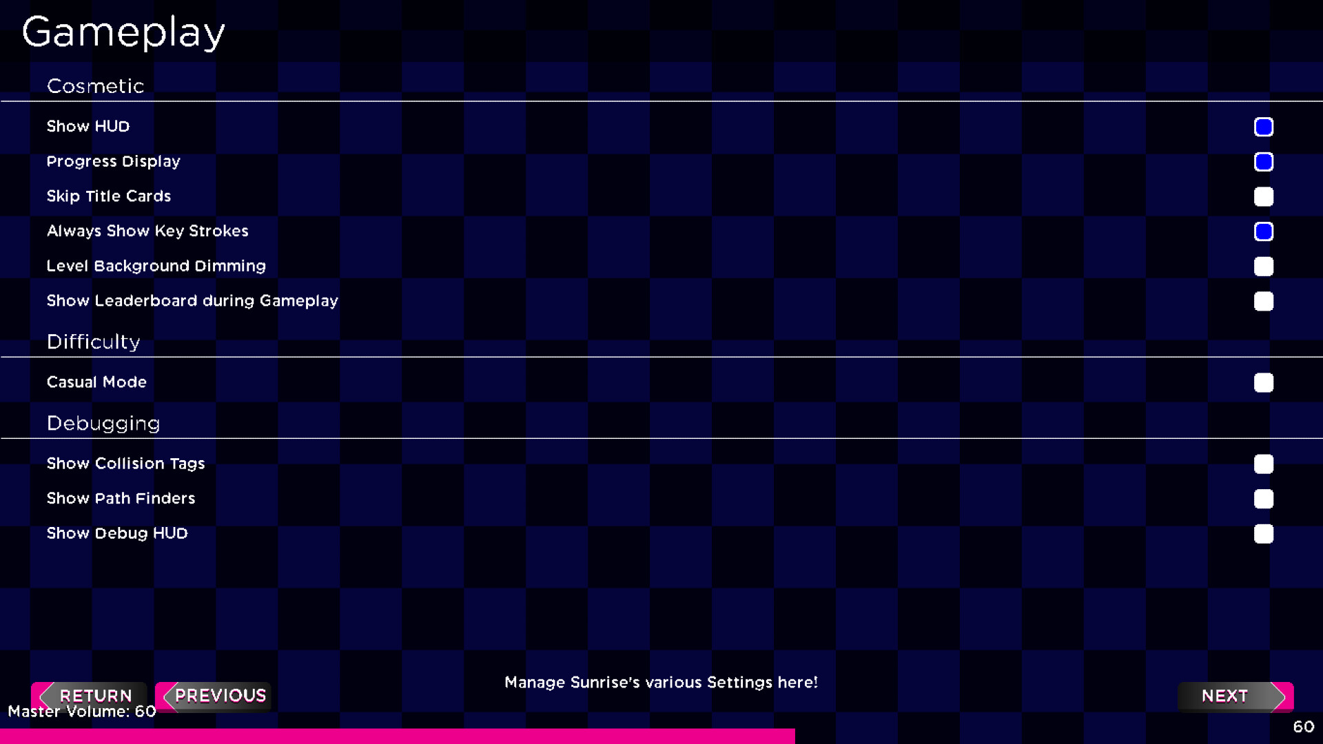 Sunrise is a 2D platformer hack and slash, featuring the ability to create and share levels you make to the world. On a mysterious day in the land of Solaris, the mayor who has been missing for 4 weeks, returns with the intent of violence, sending shockwaves across the world with a magic device, powerful enough to wipe anything from existence. With this newfound power, he shoots it up at the most important thing, the device powering the artificial sun. Now, with all light gone across the world, it's up to you to retrieve the pieces of the device, put them together, and stop the mayor before there's nothing left...