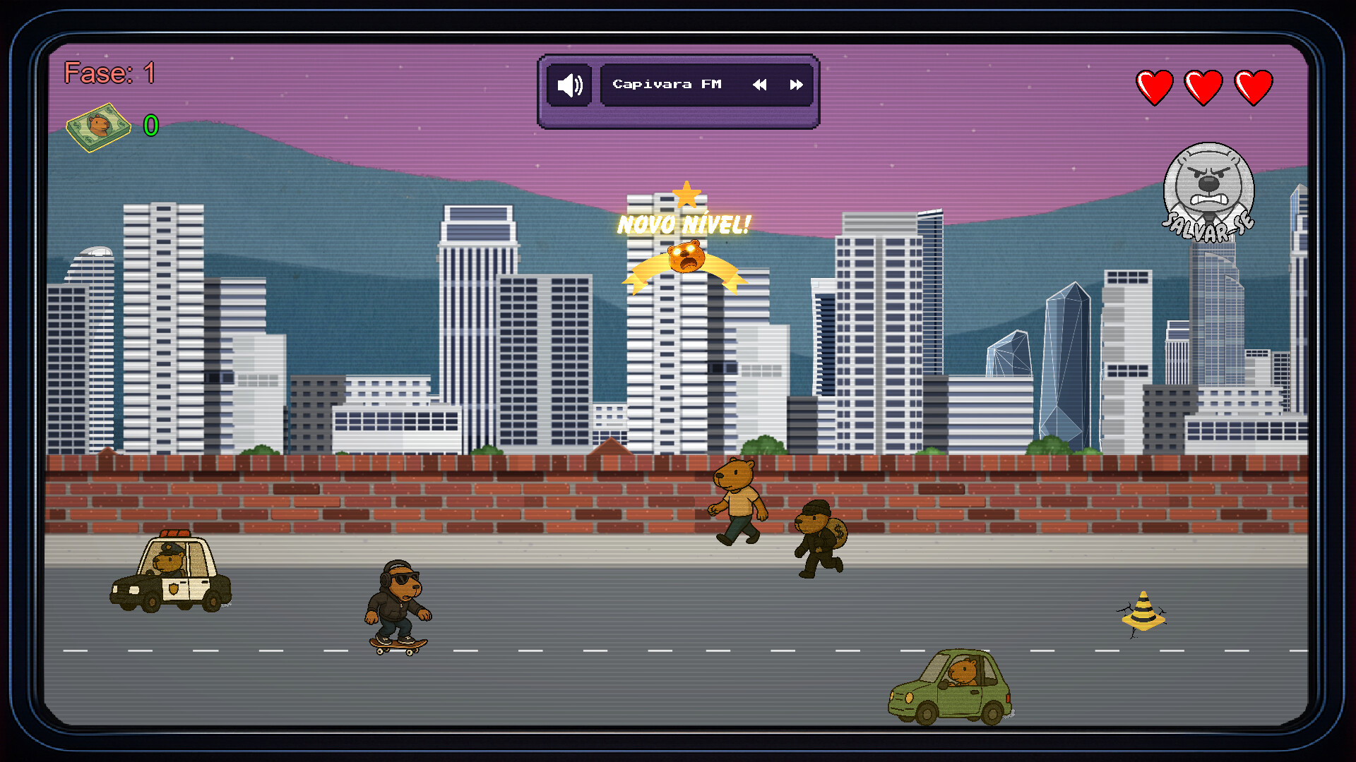 Capivara Zen is a frenetic experience that combines fast-paced action, storytelling, and an urban atmosphere, a game about persisting, moving forward, and trying to escape when everything feels out of control.