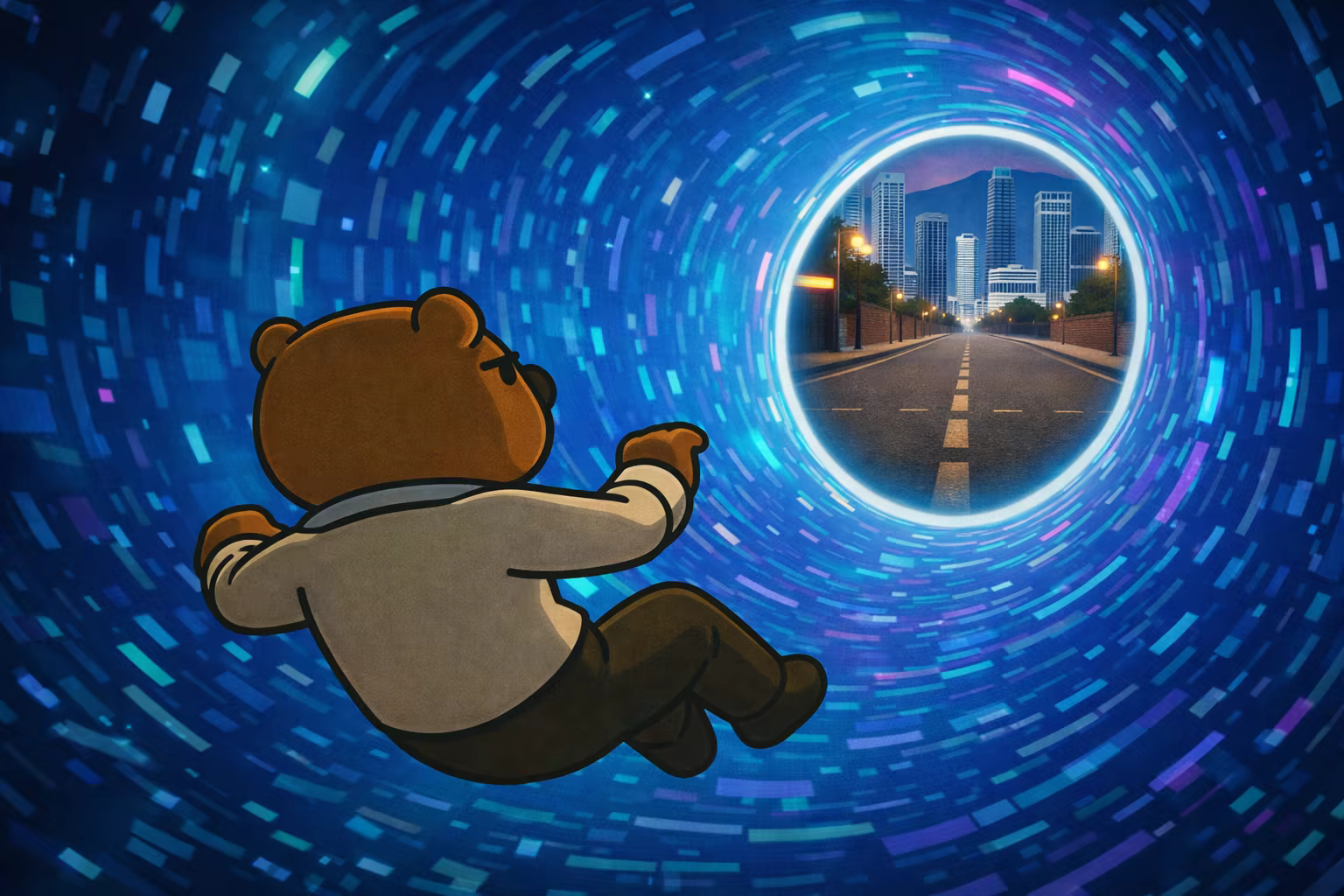 After a wild interdimensional journey, it awakens as Zen, a stylized, confident, and aggressive version of itself, trapped in an unstable urban arcade world filled with obstacles, dangers, and unpredictable situations.