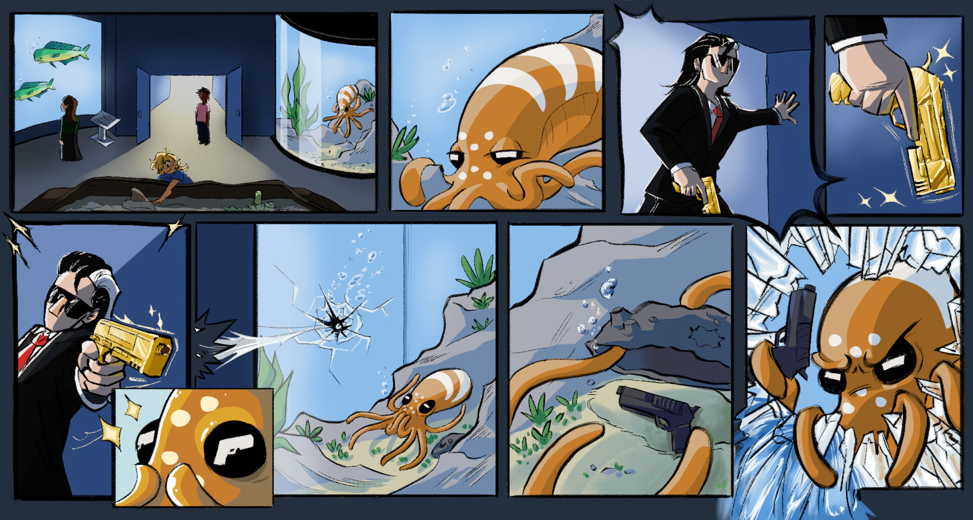 Glocktopus — Escape the aquarium. Seize the Golden Gun.