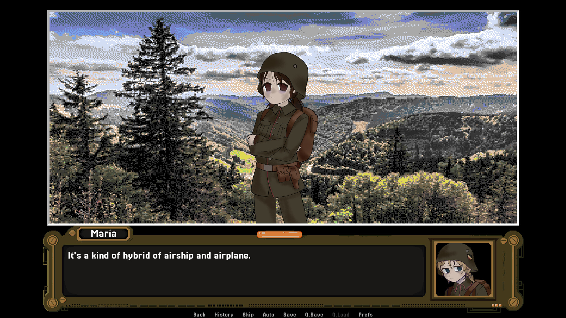 Maria Strauss is a 19-year-old German sergeant. The daughter of a college professor, she is well-read and has a good understanding of philosophy and literature. She likes to go to the theatre and opera houses. She also enjoys playing the violin in her spare time.