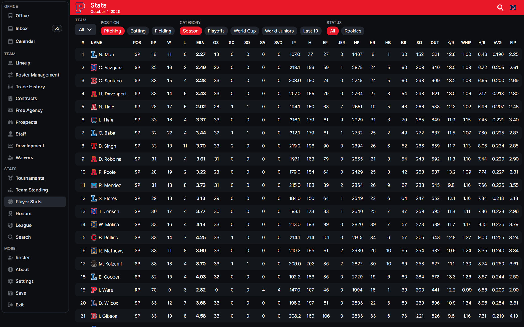 League Control: Take charge of any league, not just the top one. Adjust rules, manage expansion, set contract and trade policies, or even switch control mid-career.