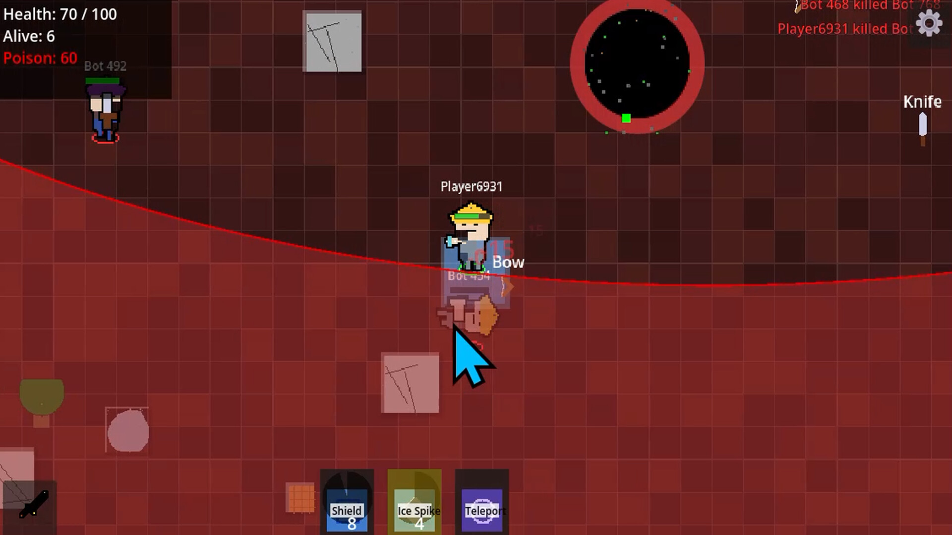 Super Battle Royale is a 2D action game that emphasizes superpower stacking and fast-paced combat. Before each match, you can choose one of several unique initial superpowers and then be dropped into a randomly generated map. Here, you will engage in a no-holds-barred, highly free-for-all duel with nine other players.