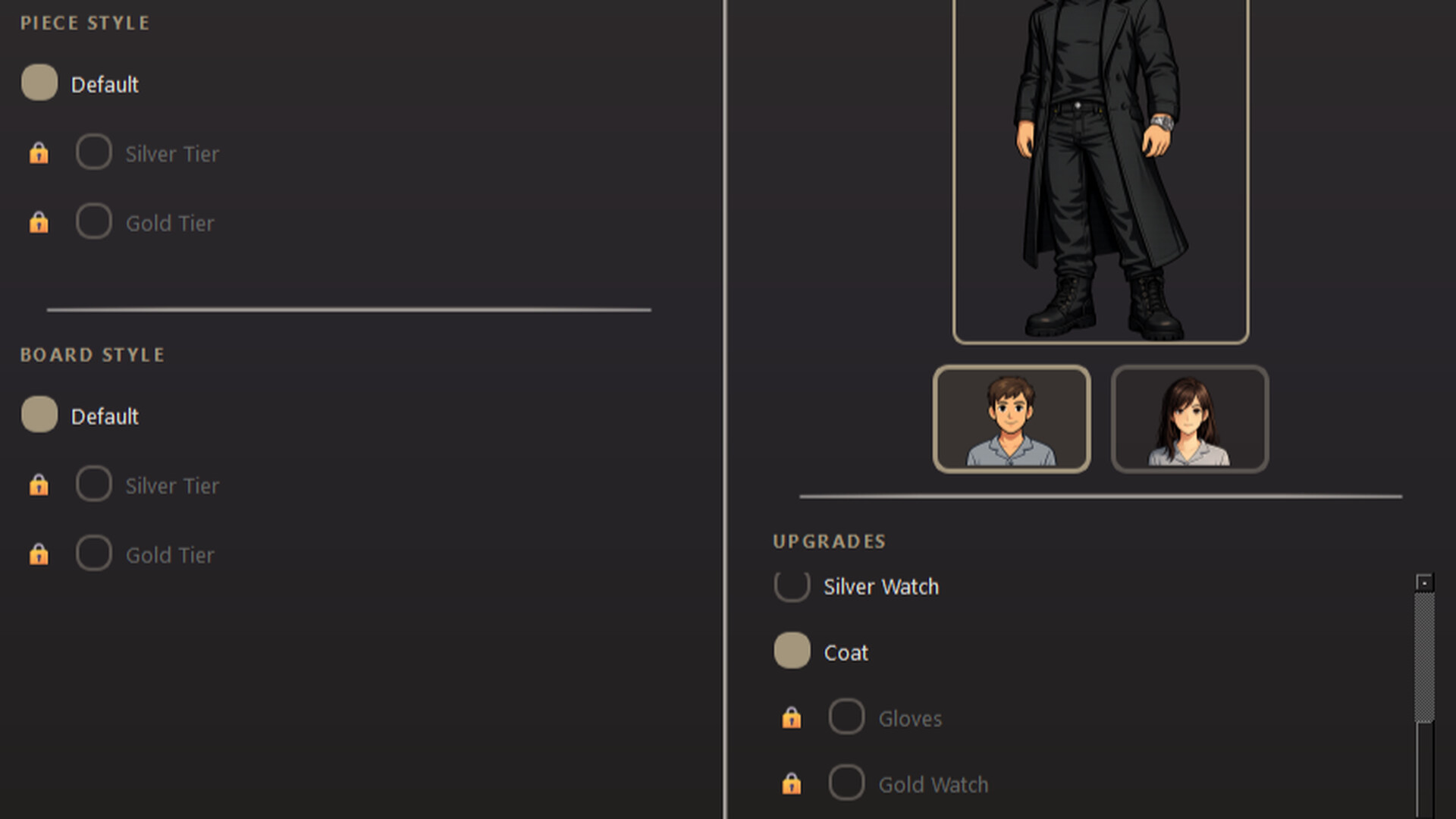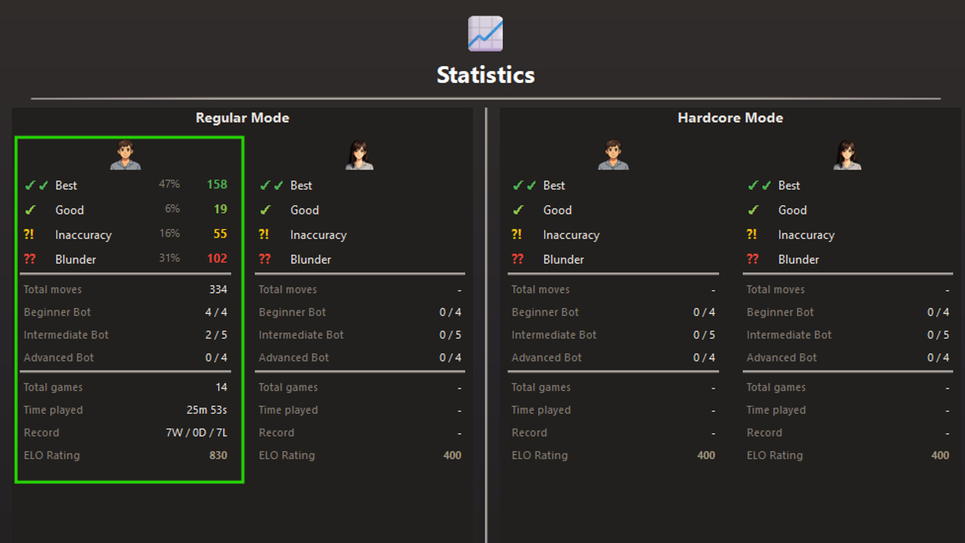 Track your progress, unlock new boards and piece sets, and customize your avatar with unique clothing and accessories as you climb the ranks.