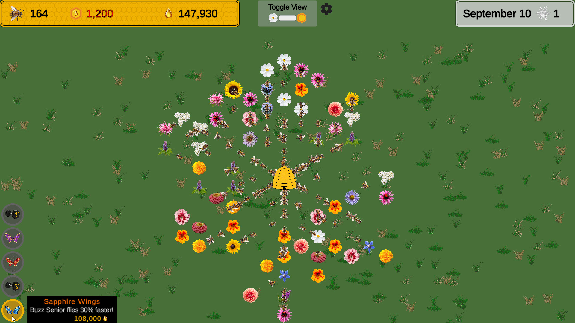 A cozy incremental game about collecting honey from flowers, building honeycomb, and hatching bees to collect even more honey.