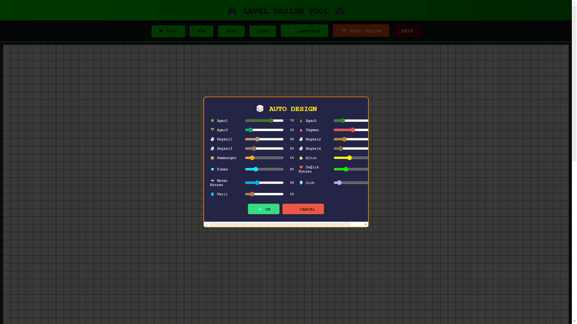 Create your own maps with the built-in level editor. Place trees, rocks, statues, enemies, items, and more on a 75x75 grid. If you lack creativity, press the "Automatic Design" button — the algorithm will generate a unique jungle map for you: full of temple ruins, tombstones, strategic troop positions, and hidden treasures.