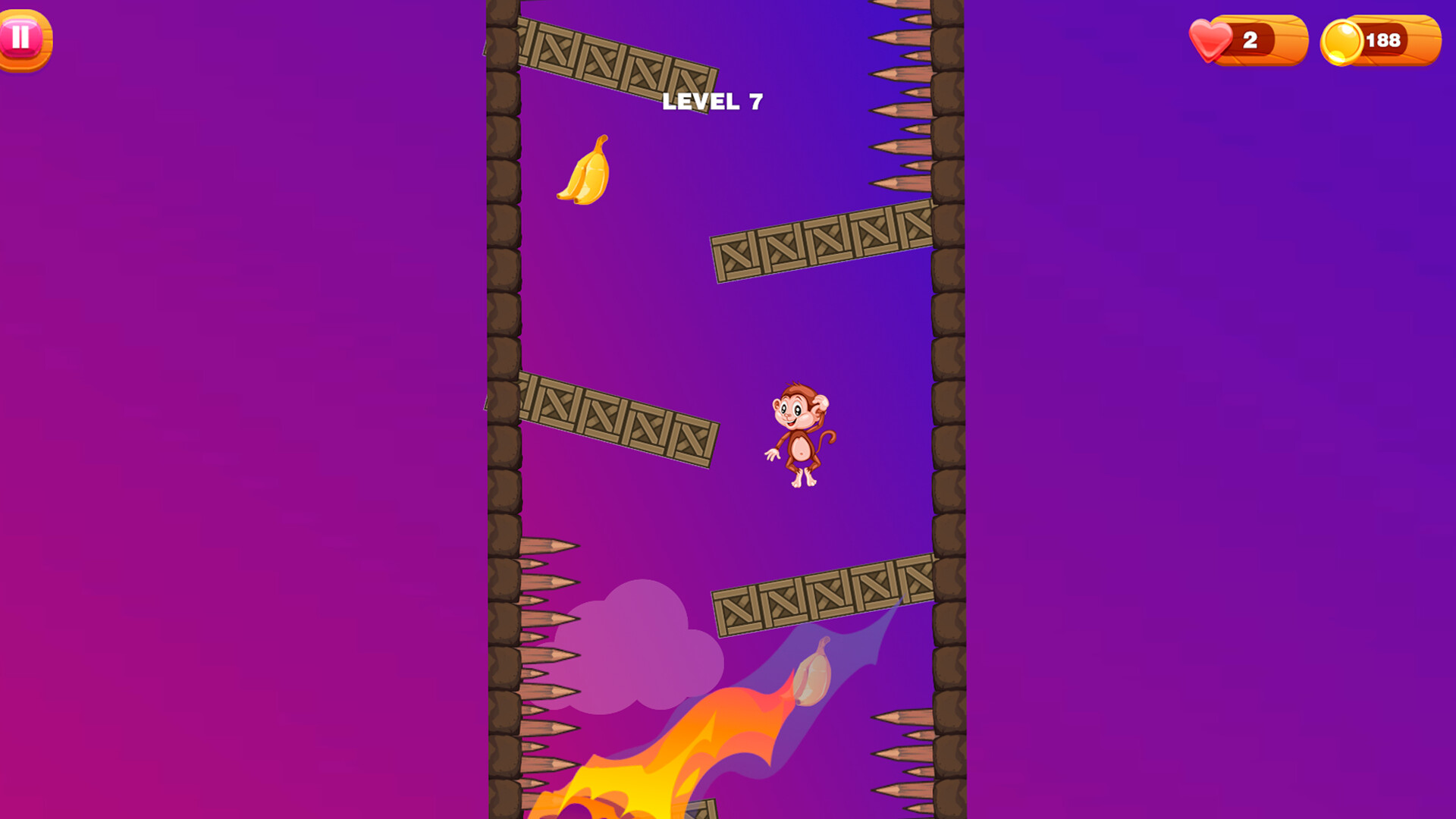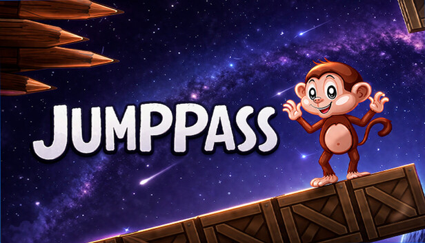 JUMPPASS is a simple casual 2D game where you control a monkey jumping downwards in search of bananas.