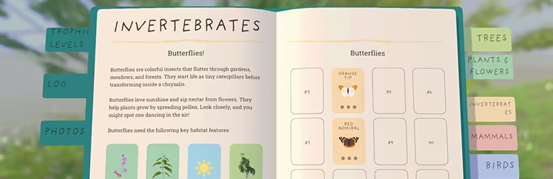 Get to know every plant and creature in your nature book, understand what they need to thrive, and see how they fit into the wider ecosystem and food web.