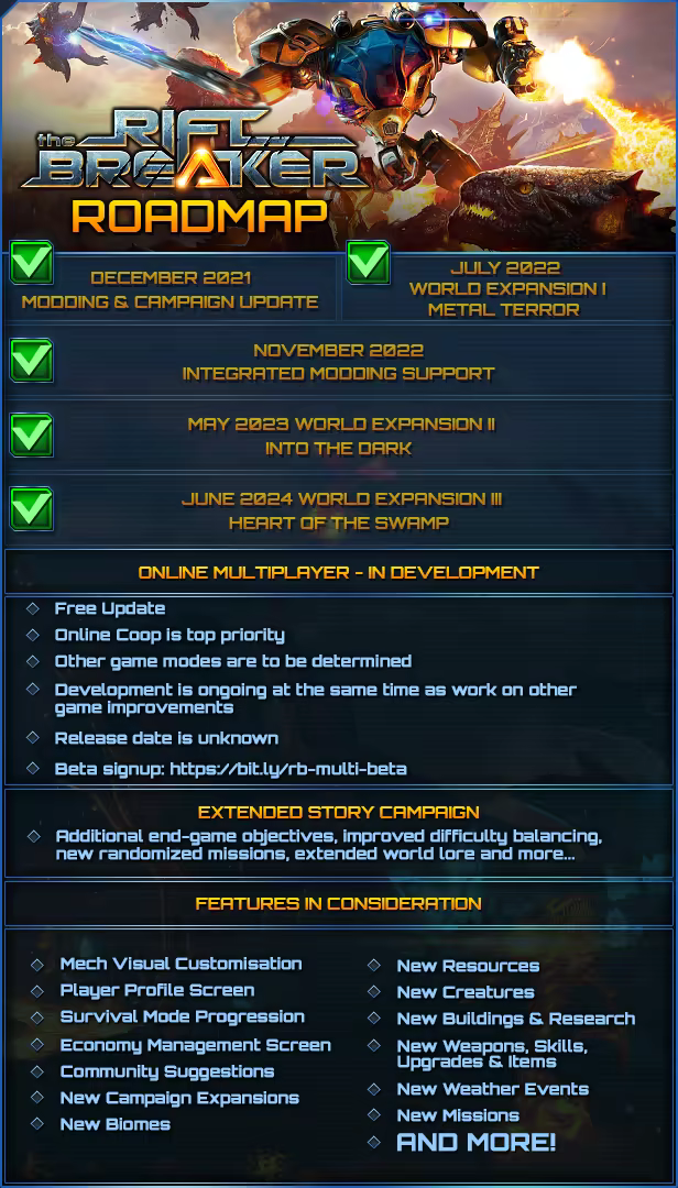If you've read everything and arrived all the way down here, then you might be interested in helping us shape the game. Please come and talk to us on the forums, our official Discord server or through any other of our social media. We'll be sharing inside info about our development progress, and we'd love to hear your feedback. Please come and help us make Riftbreaker the game You want to play!