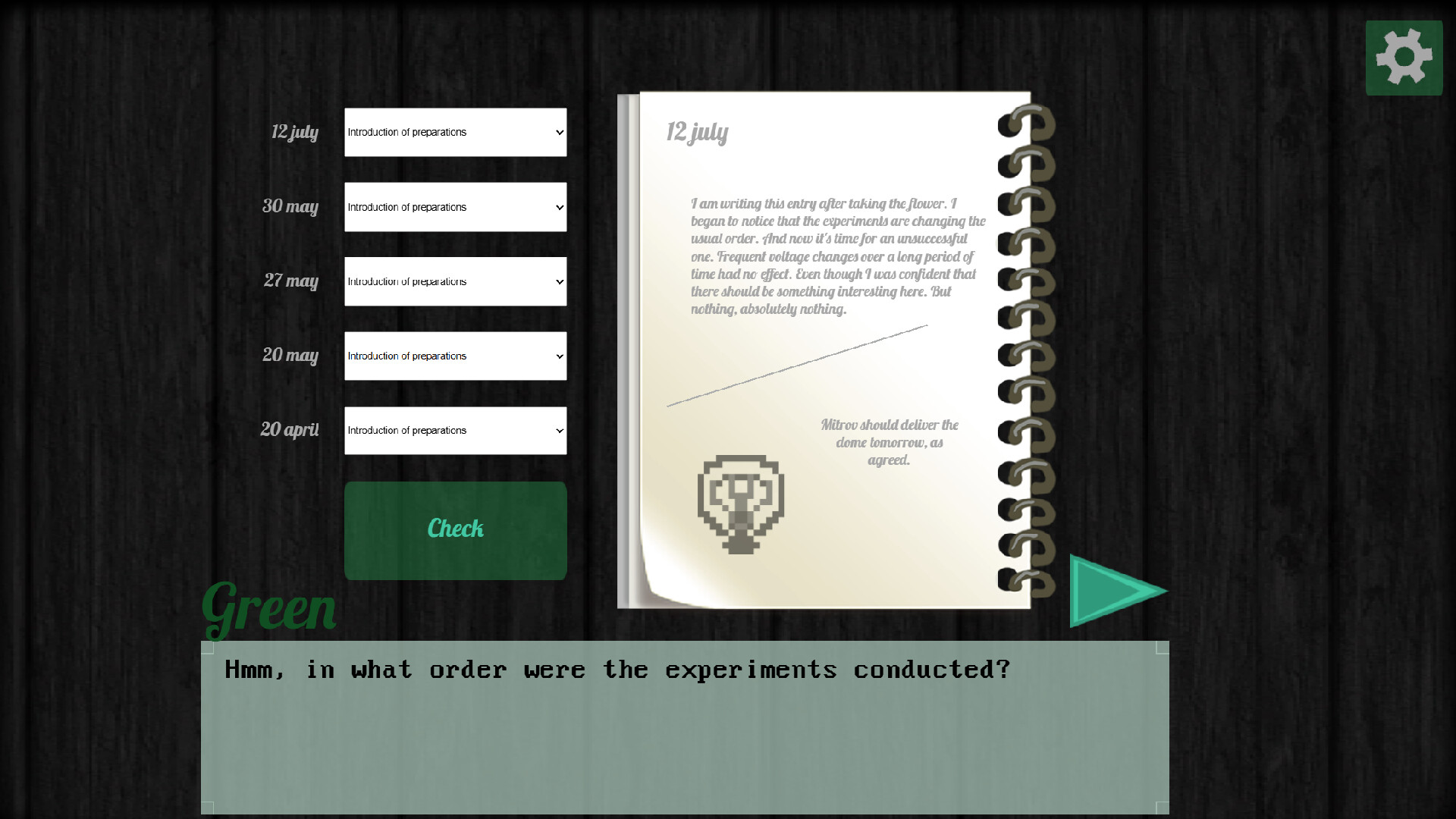 An interactive story about a scientist who was spoken to by his experimental plant. You are in a room in one of the multi-storey buildings. Communicate with the flower, take care of it, and make choices at certain points in the game.