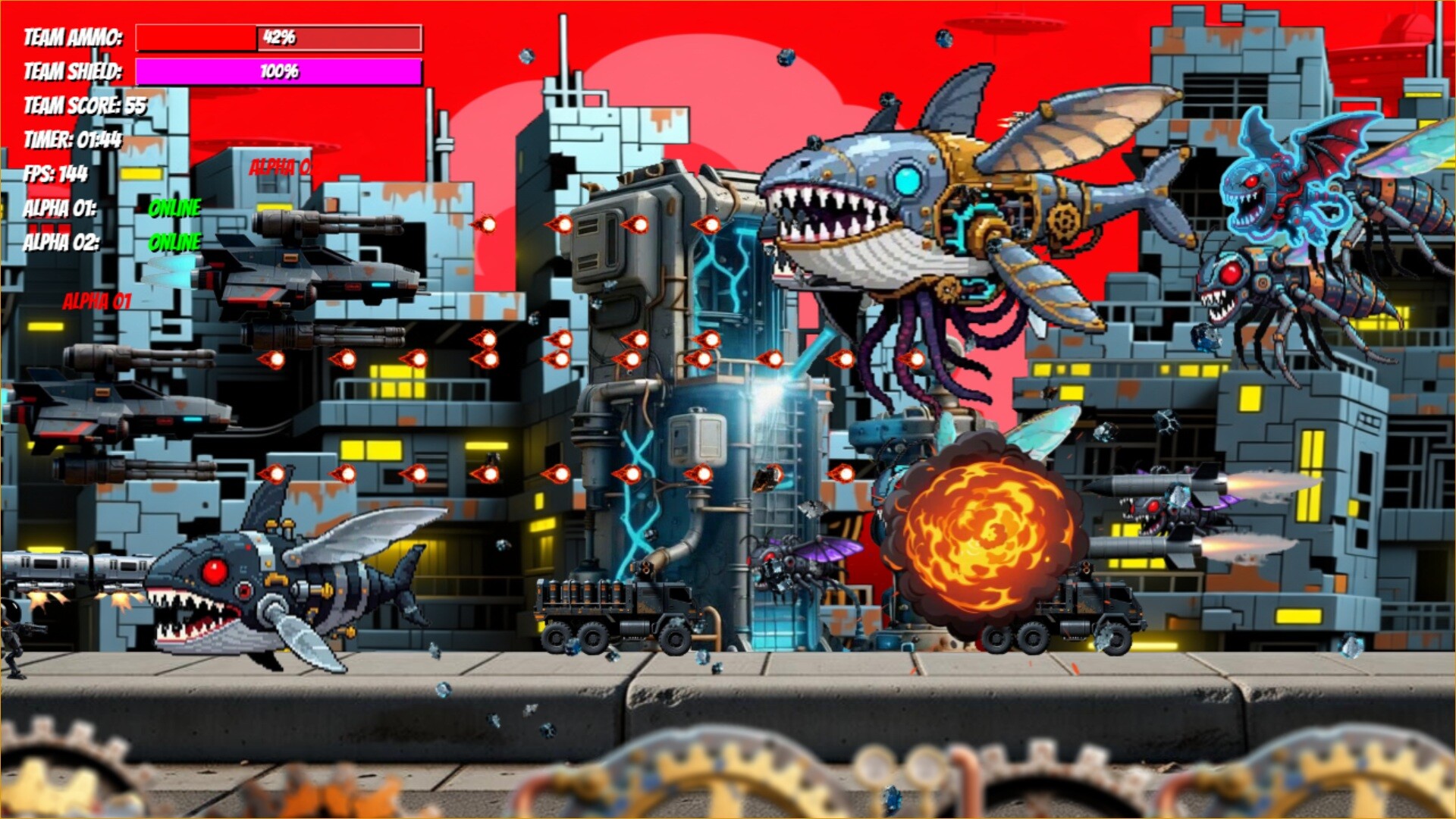 Revive the golden era of 90s arcade shooters with crisp high-res graphics, unlocked 60+ FPS smoothness, and relentless bullet-hell action. Battle waves of alien forces in a thrilling single-player campaign or grab a friend for intense online co-op multiplayer.