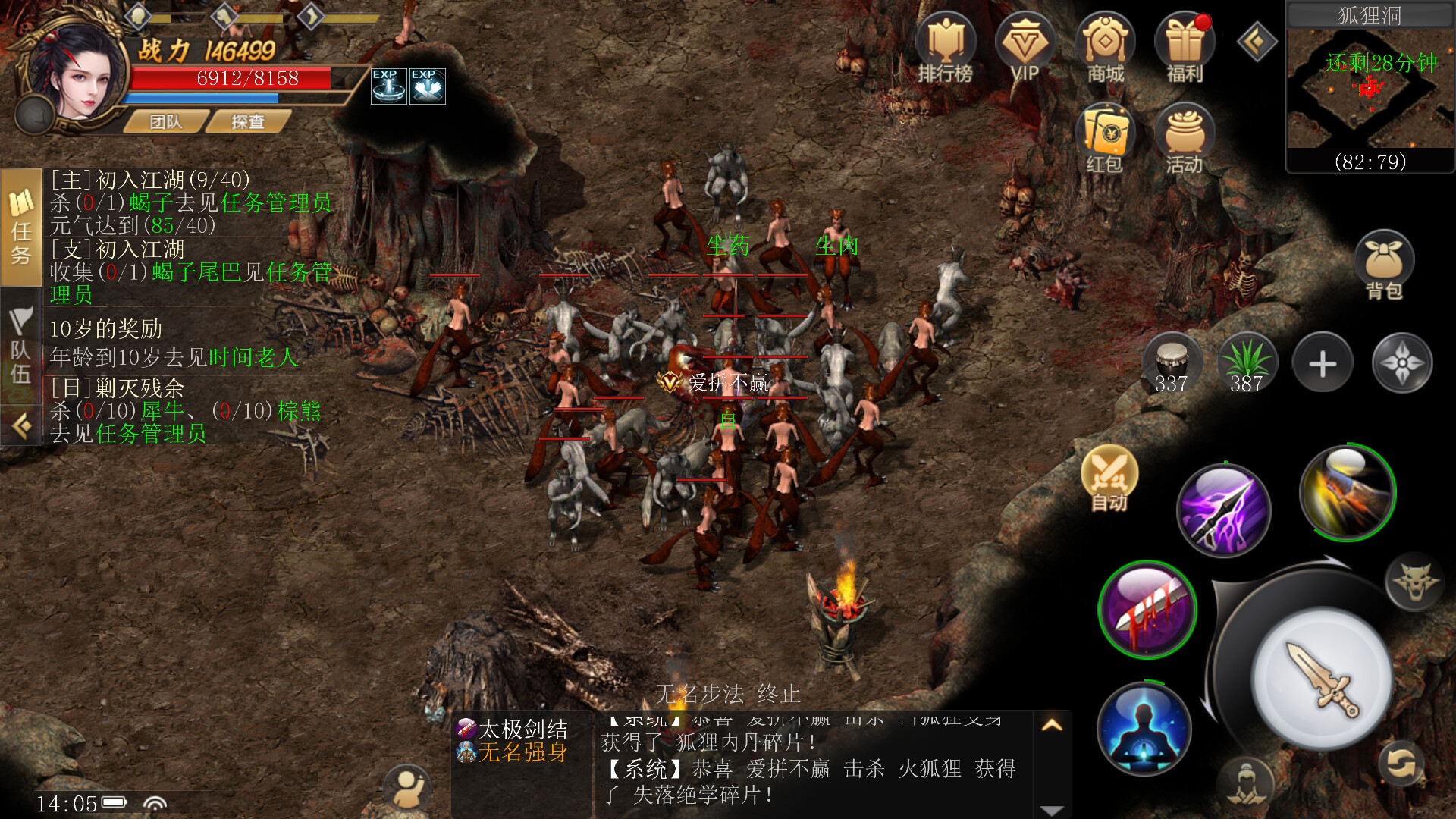 5. Team up to fight monsters, or you can log off and leave the game running—strike a balance between work and rest.