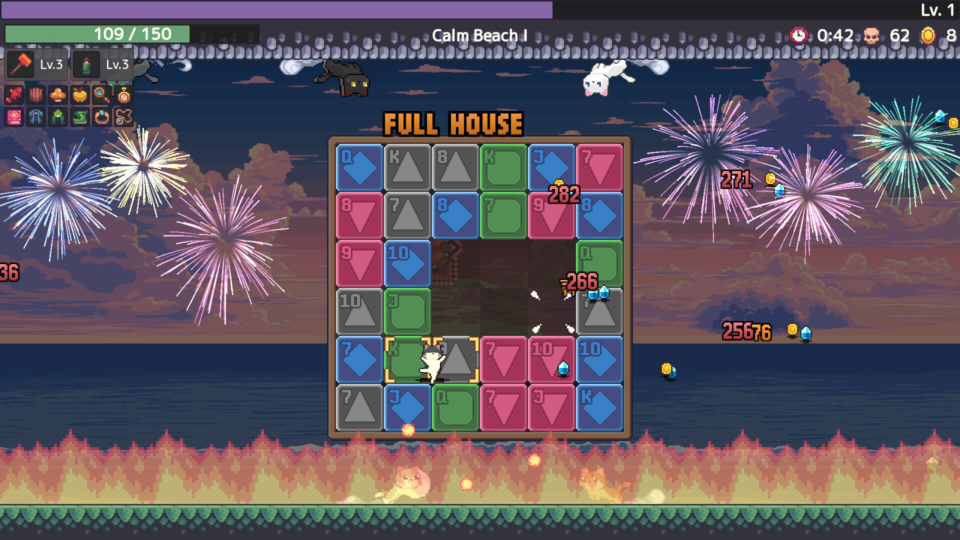 Paw & Cards is a roguelite action game that fuses match-3 puzzles with poker. Puzzle moves = player moves. The dilemma between solving puzzles and dodging enemies is the heart of this game.Build Poker Hands with Match-3 Puzzles