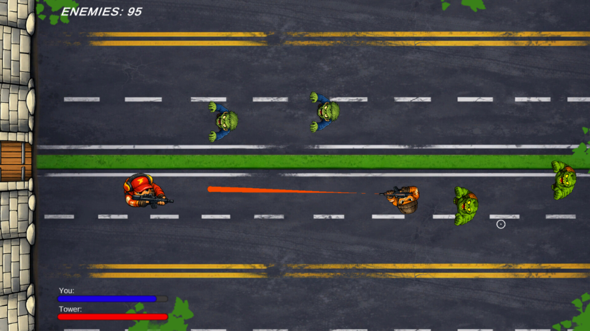 Defend your tower against endless hordes of zombies in this 2D top-down game.