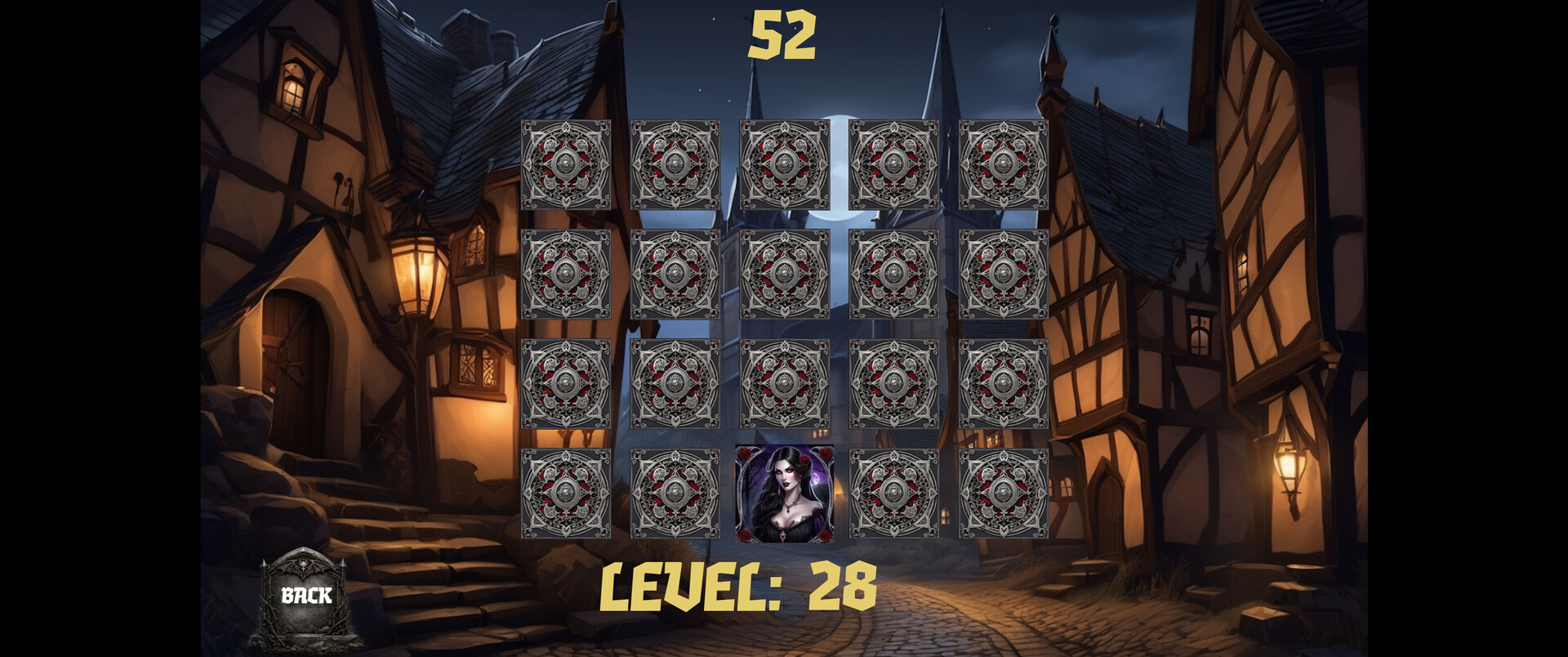 Your task is to memorize the locations of the cards with portraits of ancient vampires before the timer runs out and darkness consumes you forever.